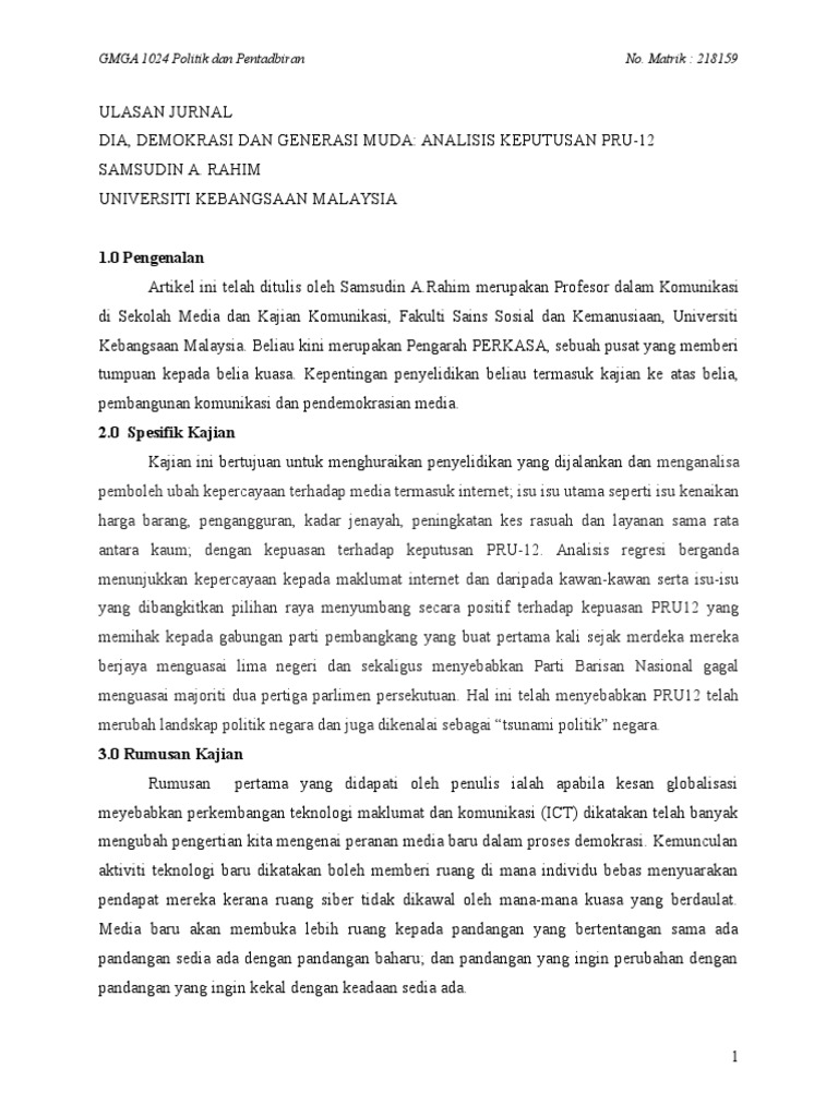 Tugasan Ulasan Kritikal Jurnal Dan Artikel Pdf